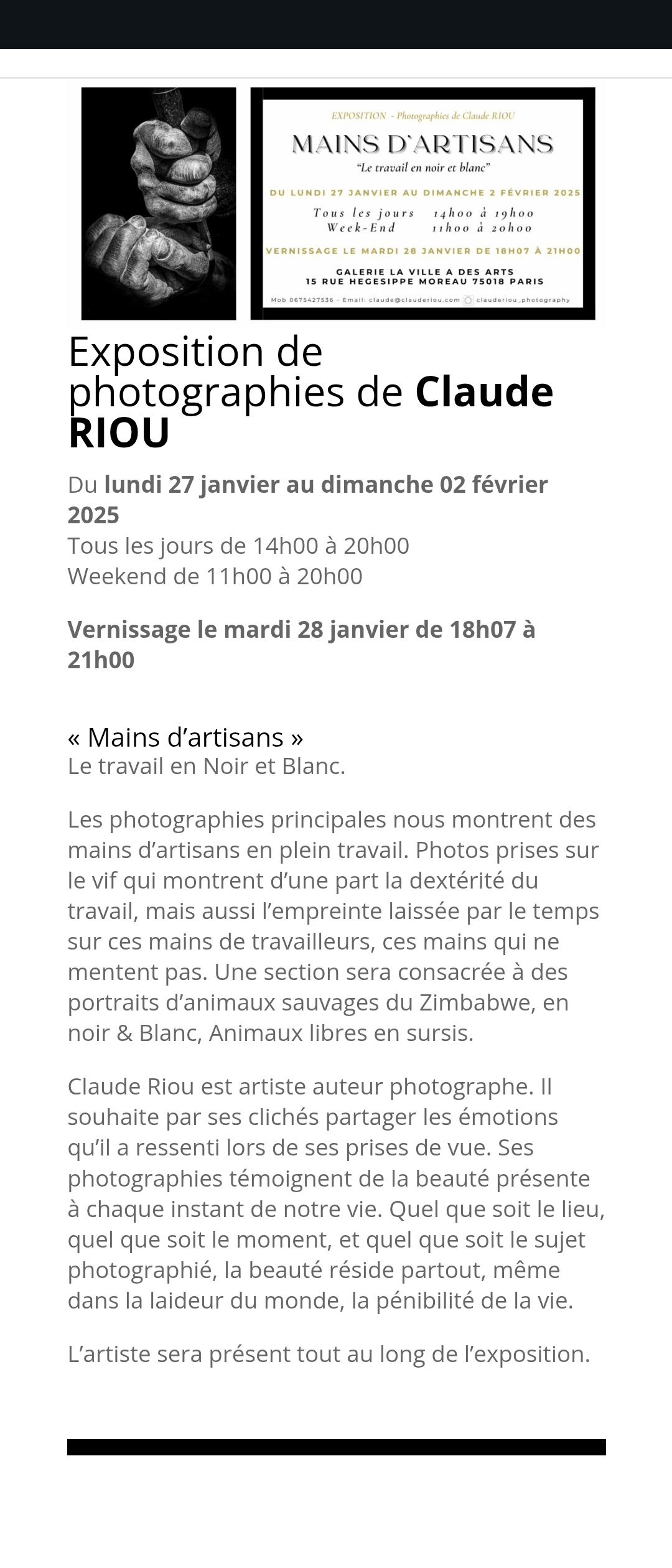J’ai eu le plaisir d’exposer à la Galerie La Ville a des Arts en cette fin de Janvier. L’occasion de rencontrer des amateurs de photographies du quartier et d’ailleurs, et d’être disponibles pour eux.